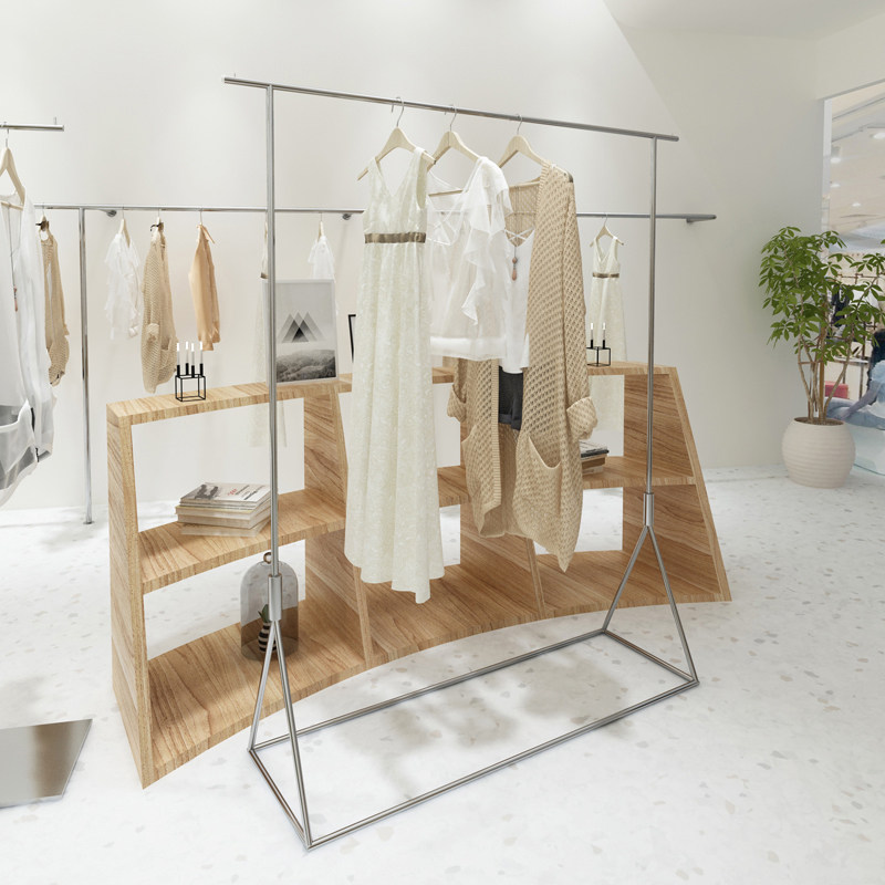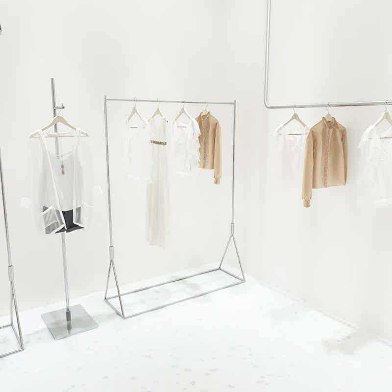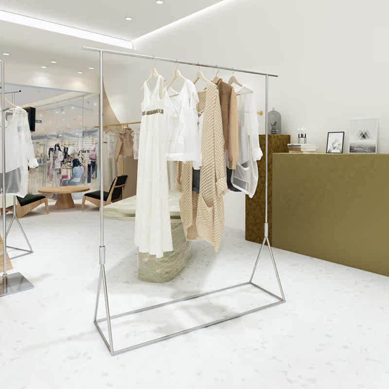 Clothing store display rack stainless steel floor-mounted clothes pole women's clothing store silver special display shelf clothes rack