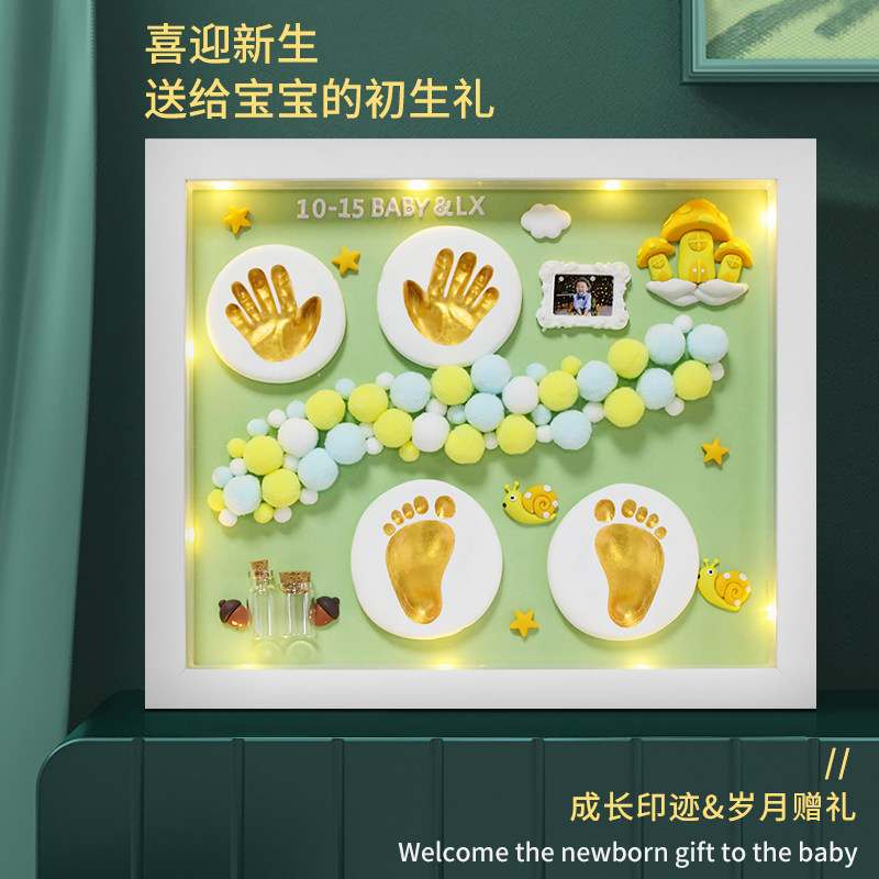 Baby's hand and foot printed fetal memorial tire hair production of newborn baby's 100-day gift