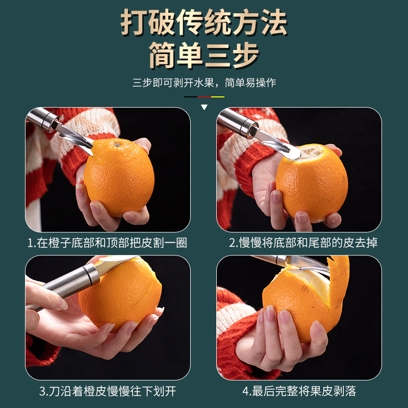 HUYO peeling orange artifact 304 stainless steel peeling orange peeling apparatus home open orange peeling grapefruit navel orange open orange device