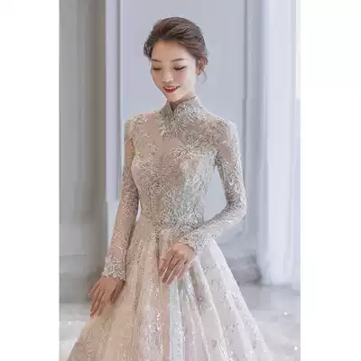 Autumn and winter long sleeve main wedding dress 2021 New temperament bride French starry sky palace high end luxury tailed small man