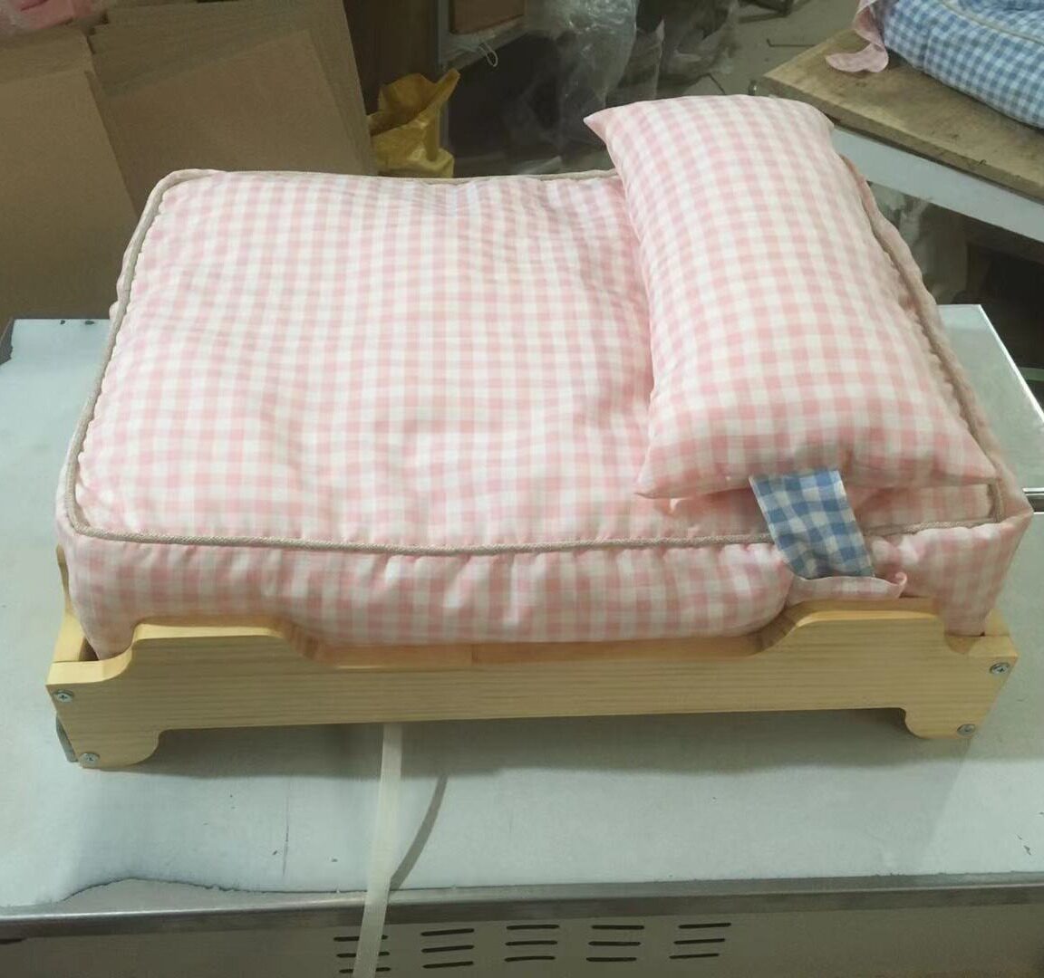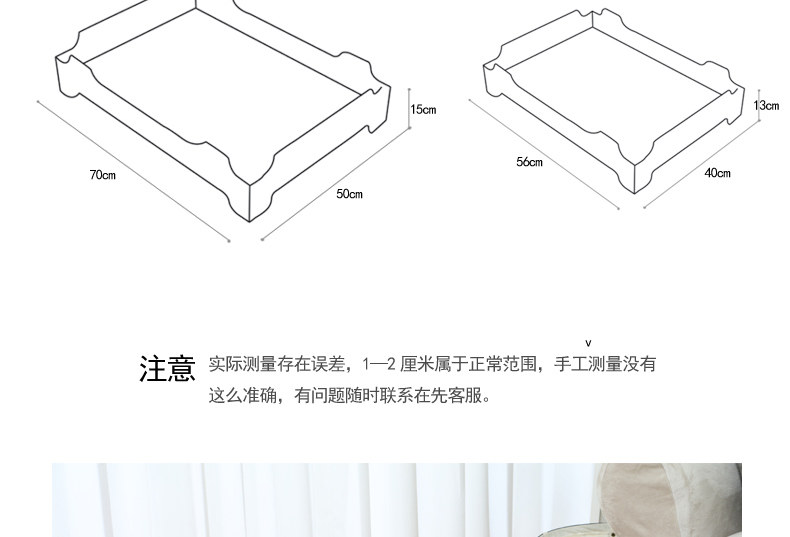 S-small 56*40*13 (recommended within 10 pounds) M-medium 70*50*15 (recommended within 30 pounds) small bed board is 5mm thick composite board