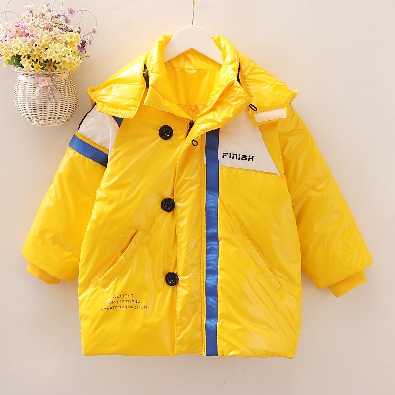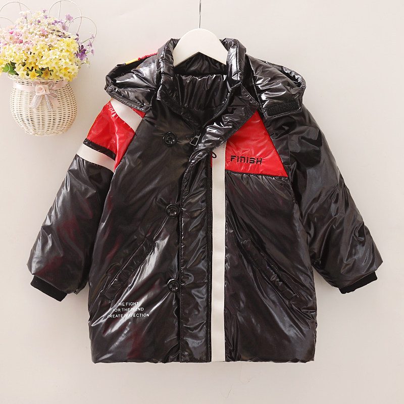 Boy's down clothes in long version free of washing CUHK Warm Winter Dress Foreign Pie Boy Bright Face Thickened White Duck Suede Jacket