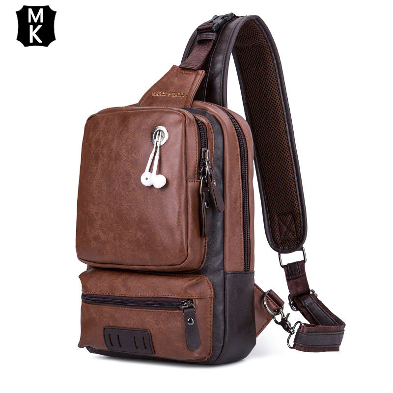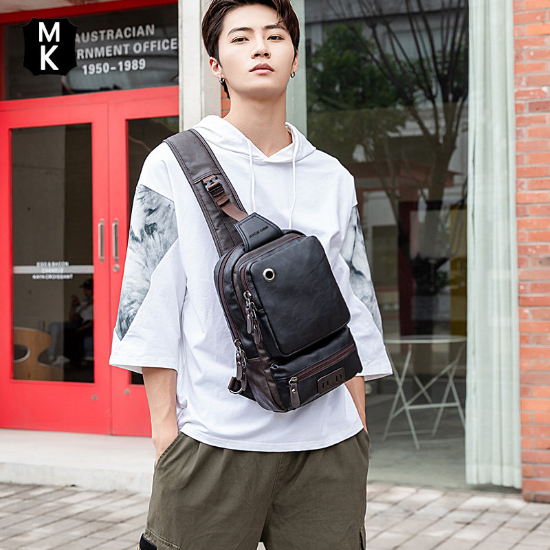MK Chest Bag Men Genuine Leather Single Shoulder Bag Fashion Casual Men's Diagonal Satchel Large Capacity Retro Sport Scapegoat Men's Purse