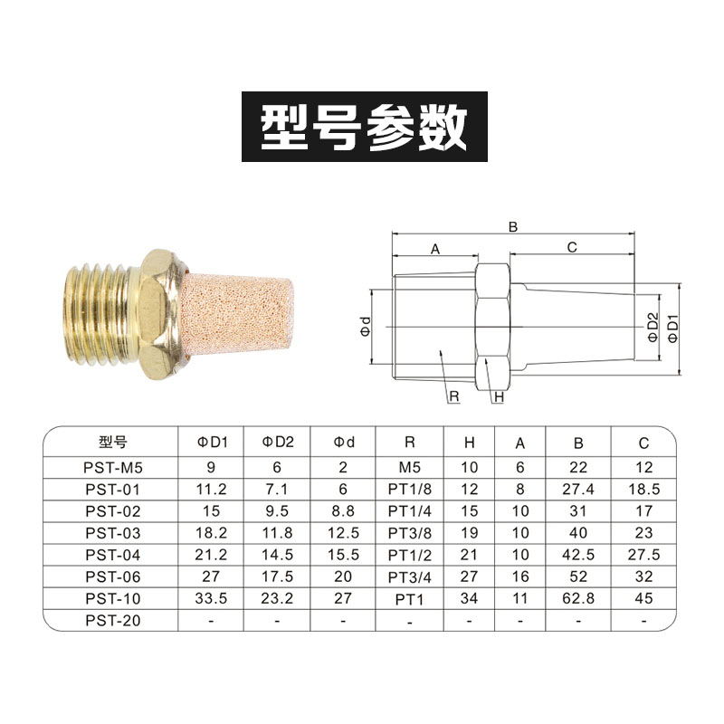 DPC Okada Seiko pneumatic silencer BSL-01 02 03 04 04 06 long flat head adjustable M5 solenoid valve
