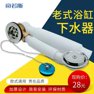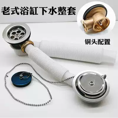 Telescopic full copper bathtub tub sewer plug type old-fashioned bathtub sewer accessories overflow port