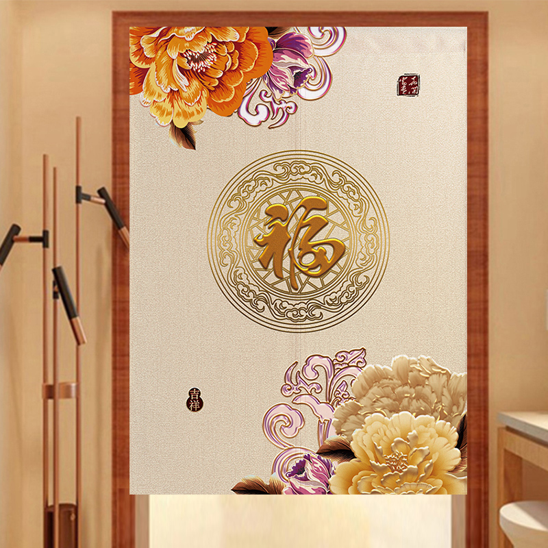 New Chinese Fu Character Peony Flower Door Curtain Sheltering half-curtain Kitchen Make-up Room Living Room room Partition Cloth