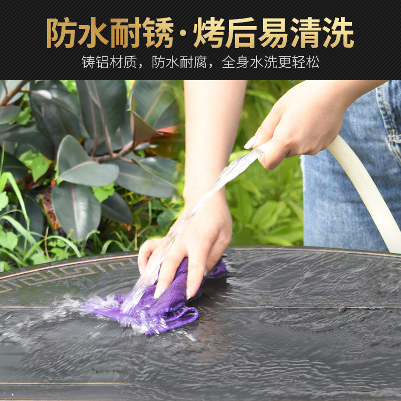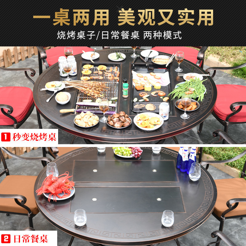 Outdoor tables and chairs Cast aluminum household charcoal barbecue table Electric oven Courtyard terrace Garden Casual European dining table combination