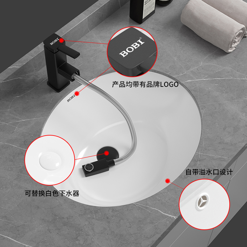 BOBI Popebathrooms Oval Ceramic Washbasin Dressing Room Washbasin washbasin Basin Flush Table