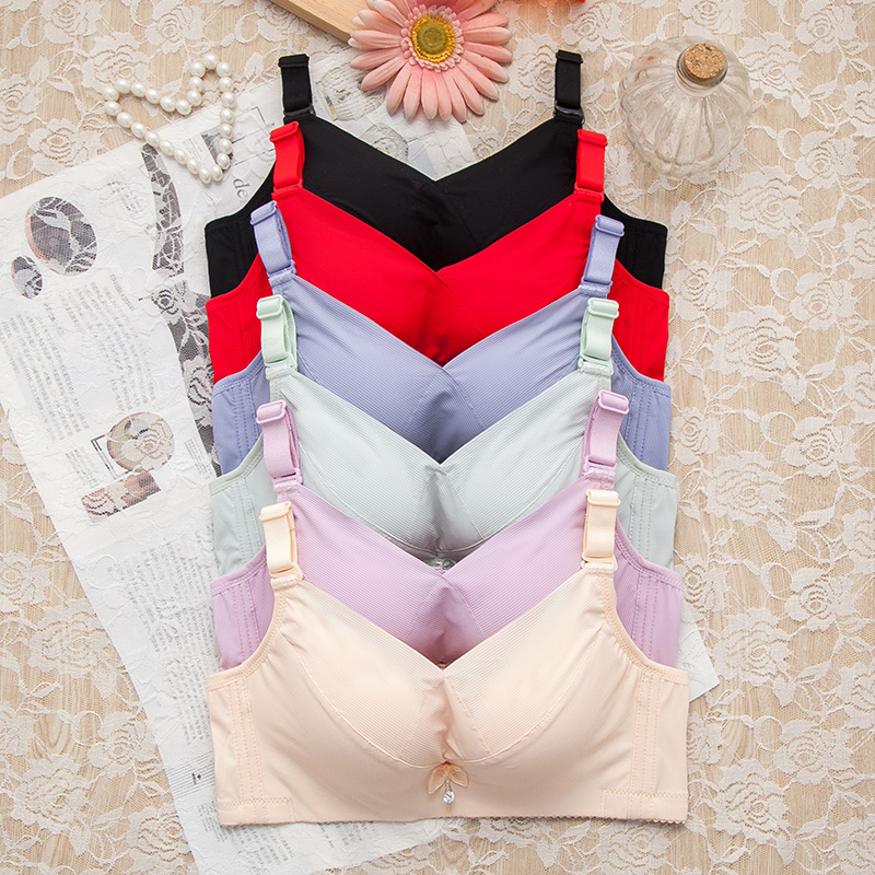 Small chest flat chest special underwear bra women's non-steel ring baby cotton A cup thickened gathered non-magnetic bra through security inspection