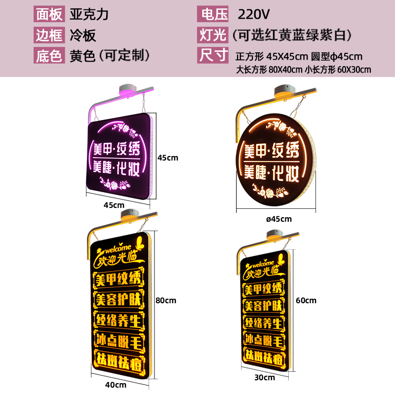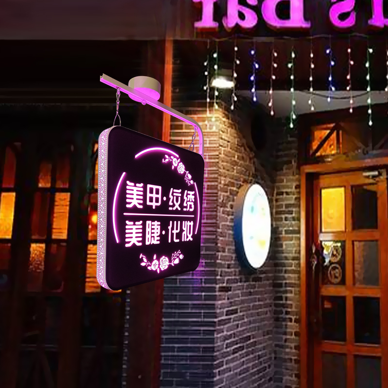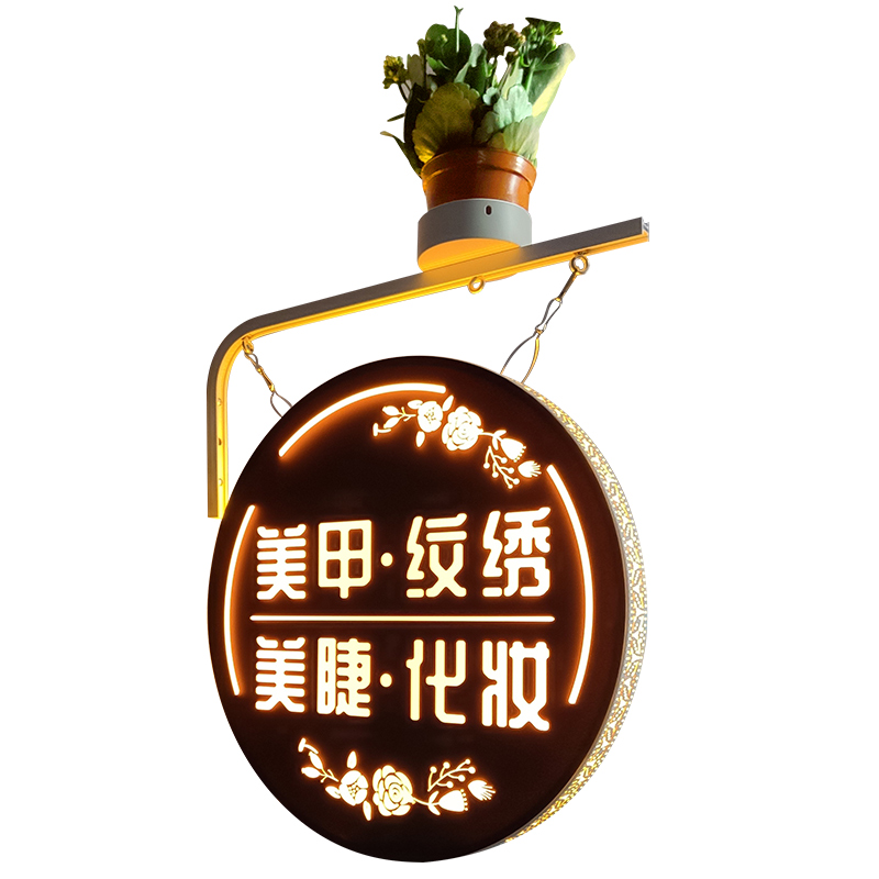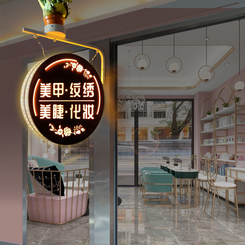 Wrought iron round double-sided side hanging beauty nail art head light box creative led billboard hanging wall type signboard custom