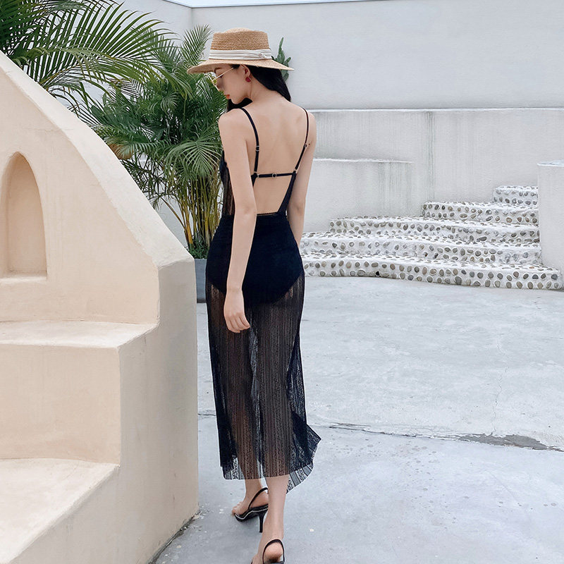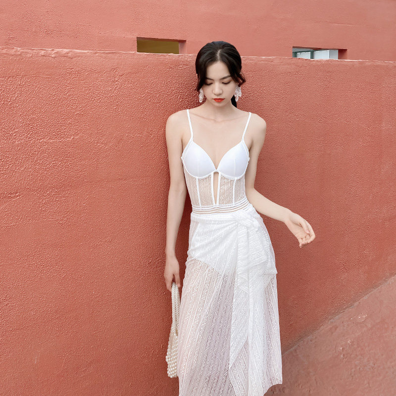 Sexy one-piece swimsuit two-piece fairy fan small chest gathered new hot spring display belly cover swimming suit net red
