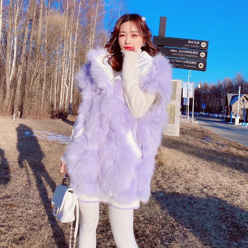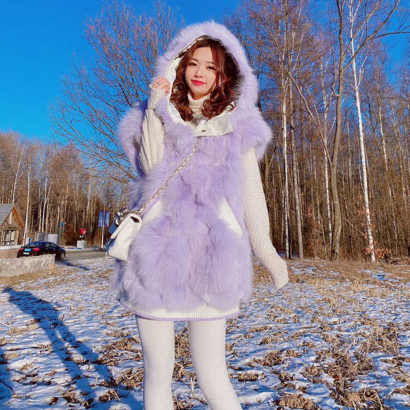 Miss Luxury Christmas Surprise "Purple Fox Fur Fur Jacket Women Pullover Hooded Vest