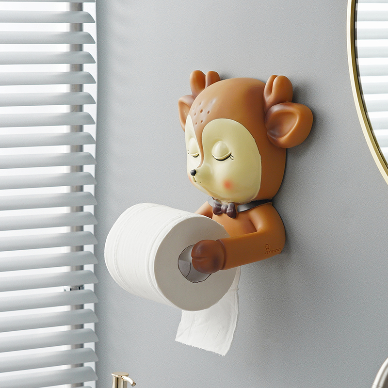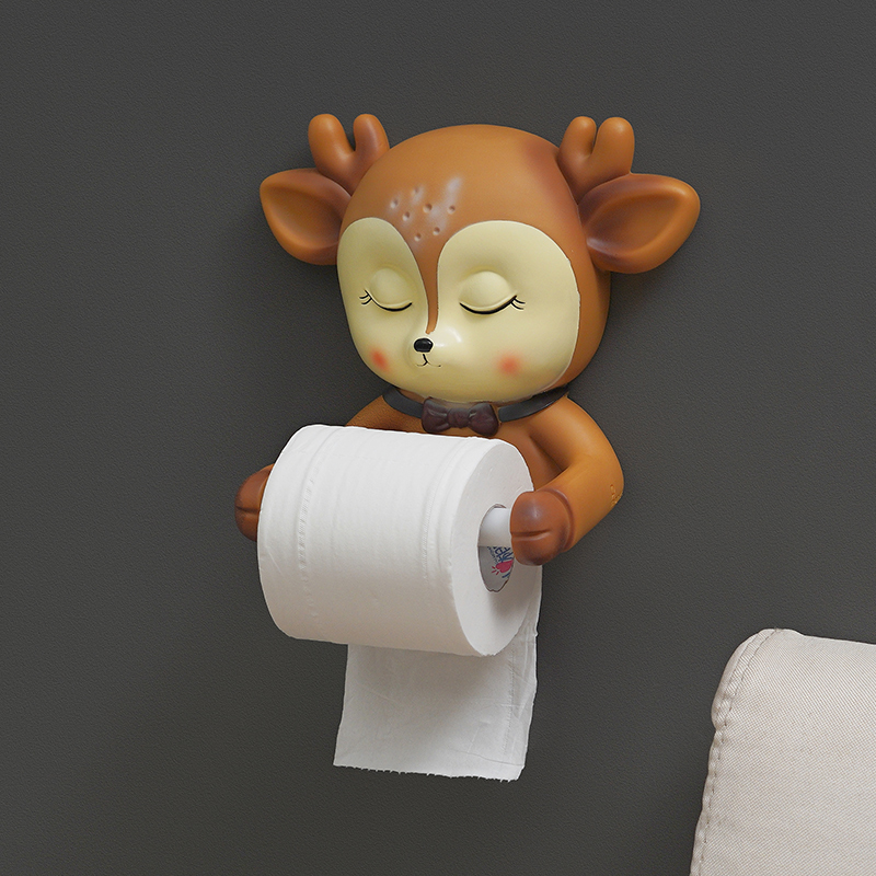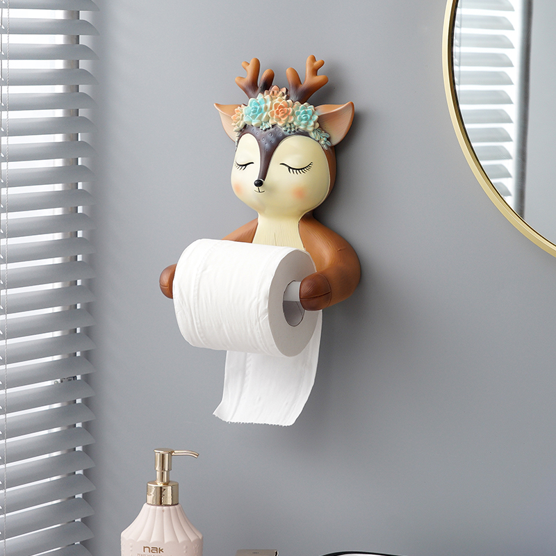 Cute cartoon deer wall hanging powder room toilet creative tissue box bathroom wall mounted toilet roll rack