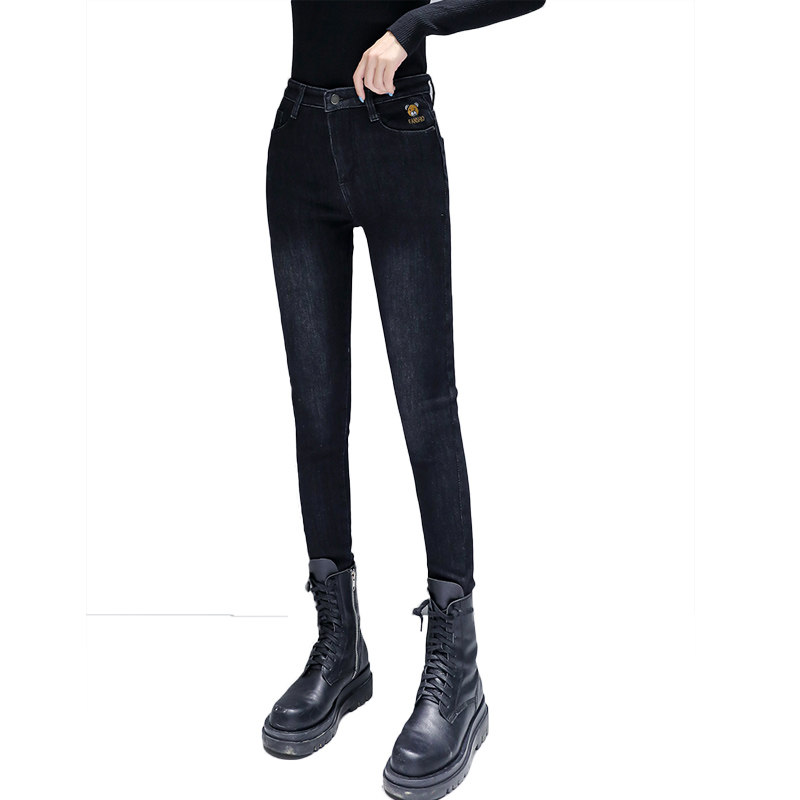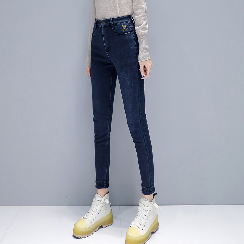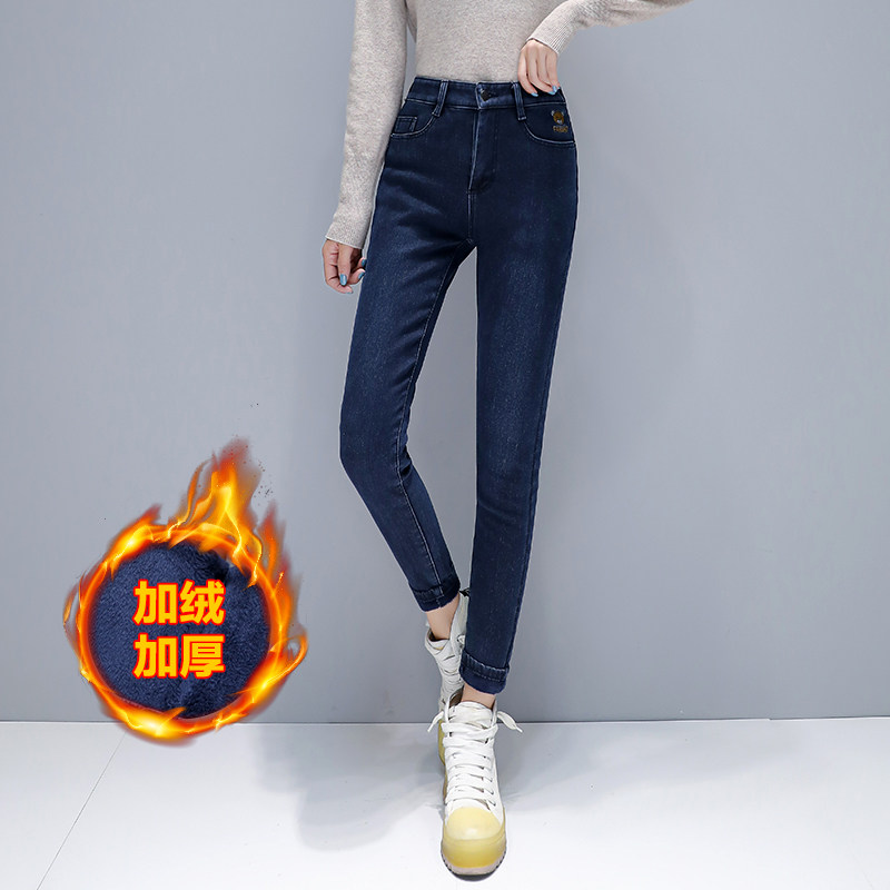 Jeans women 2020 new plus-down plus thick women's pipe pants winter trim height waist thin pants autumn winter