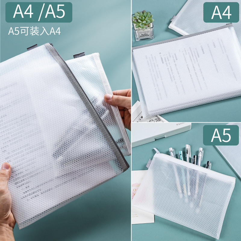 Able A4 thickened file bag cashier bag archive bag office with transparent plastic mesh pull chain bag student paper containing large capacity waterproof A5 bill file packing information
