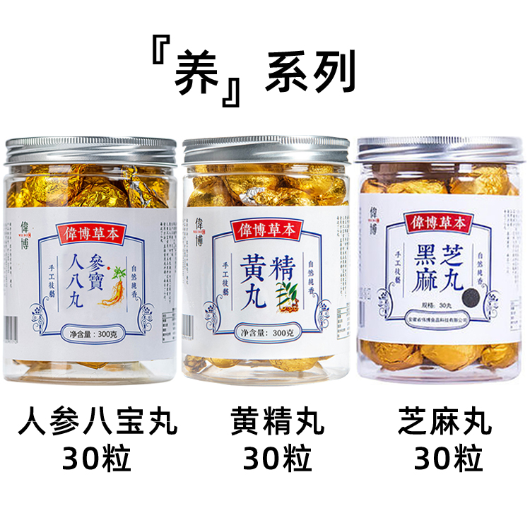 Black Sesame Pills, Rose Pills, and Huangjing Pills, each 30 capsules