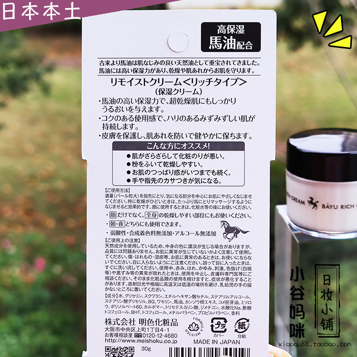 Japan native Ming colour horse oil face cream 30g High moisturizing dark marine fish oil face Ocular Body Nourishes Cream