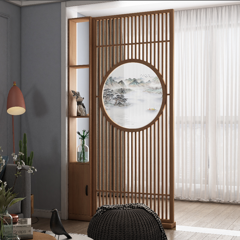New Chinese door partition screen Solid wood entrance cabinet Simple modern living room screen Hollow Bogu rack shelf