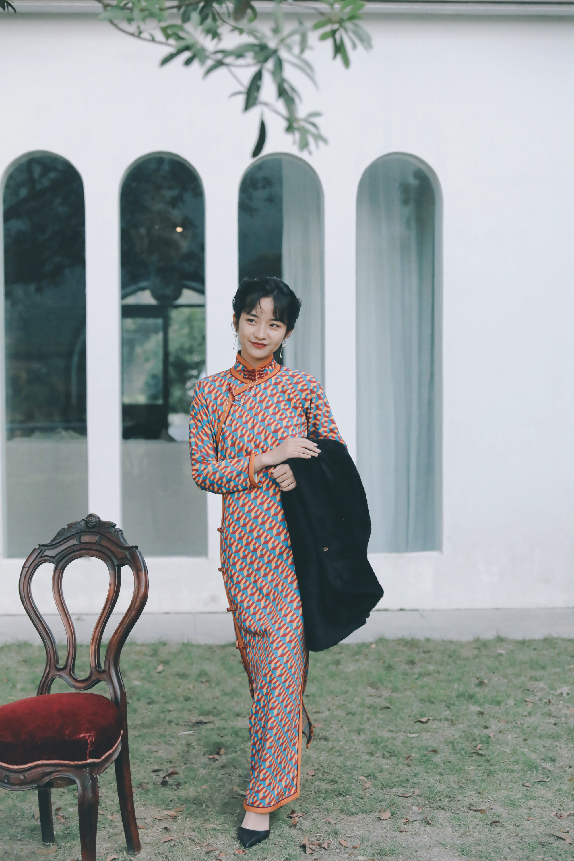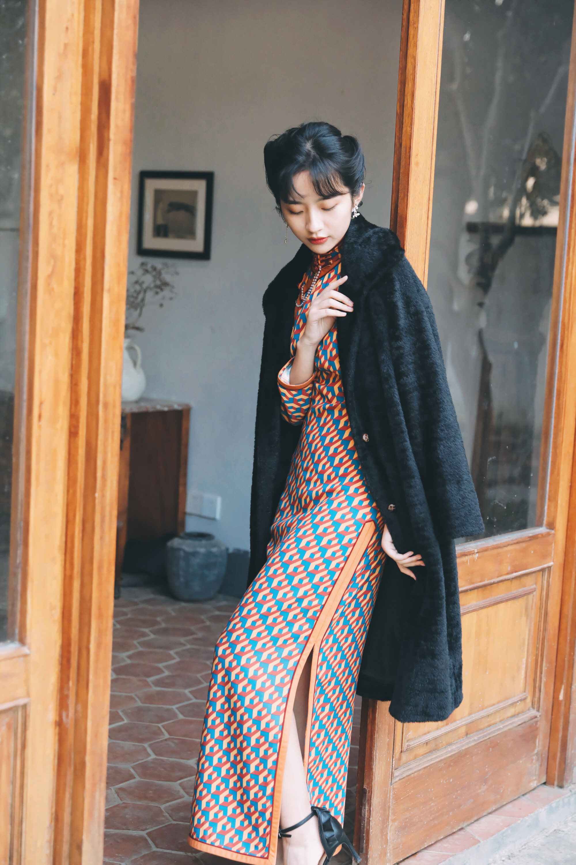 retro,A long flag robe.