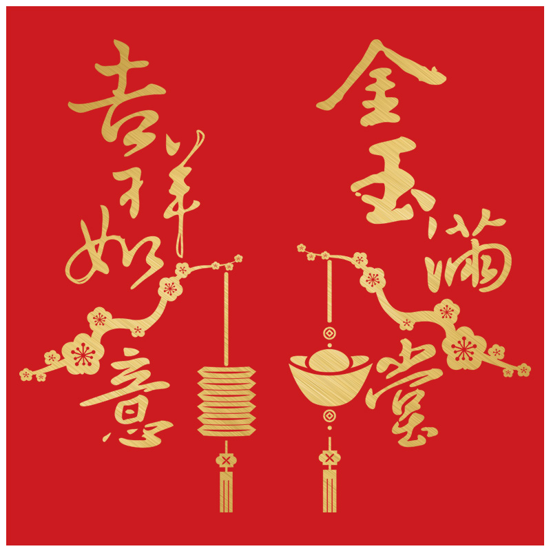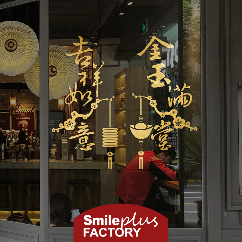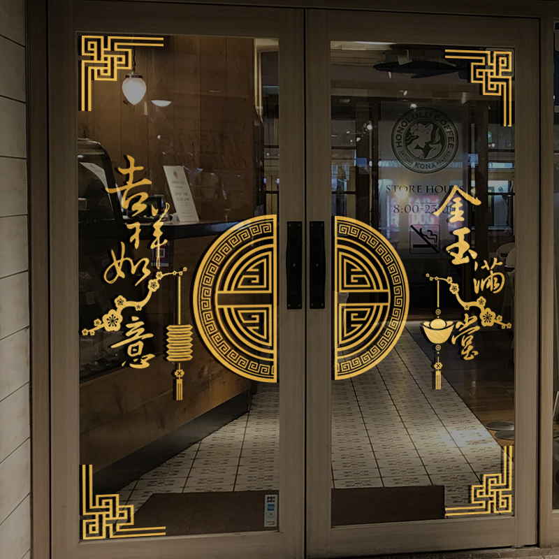 Lamei blessing 2022 New Year decorative glass door scene layout home kindergarten Chinese wind wall wallpaper self-adhesive