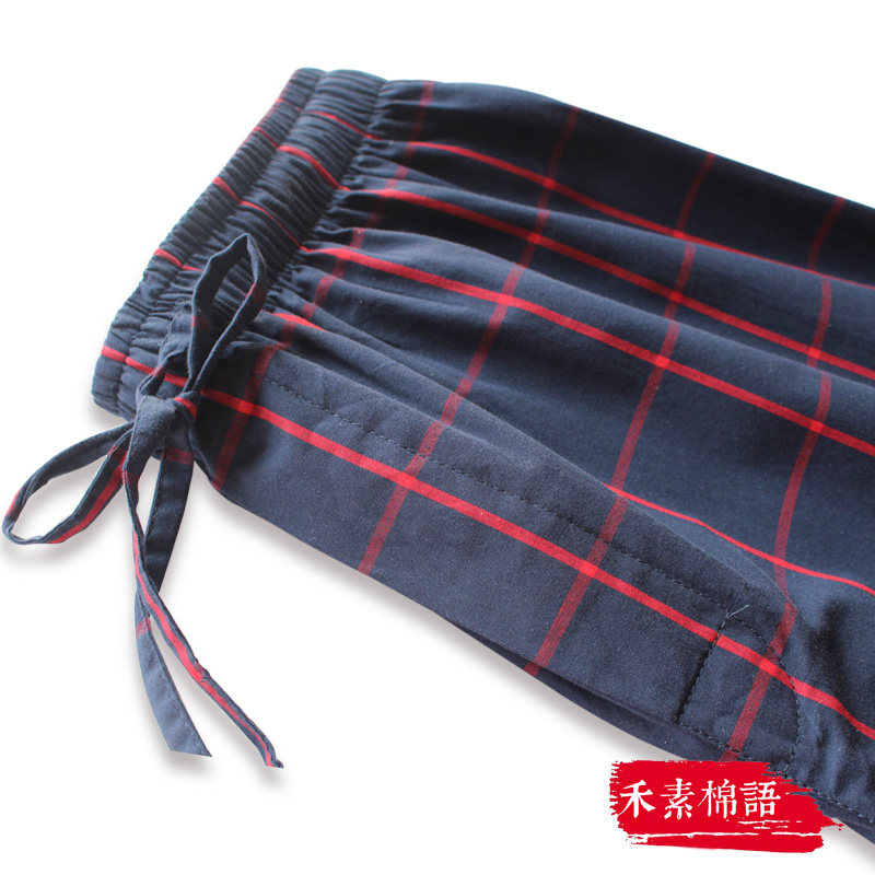 Pajama pants men's cotton trousers loose casual home large size plaid high waist cotton summer men's home pants home