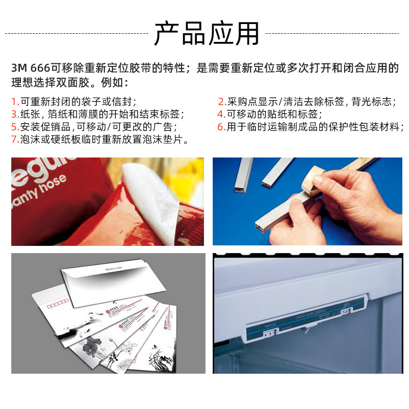 3M666 Removable transparent double-sided adhesive reusable adhesive tape glass metal wood paper fixed without residual glue