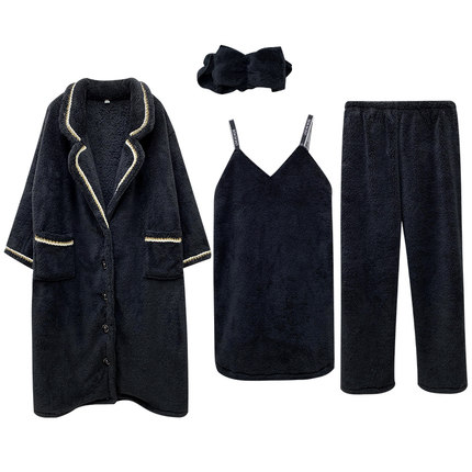 Chao Ocean Pays Daily Gtra ~ 4 pieces of sleepwear women's autumn and winter plus suede thickened pyjamas bathrobe home clothes