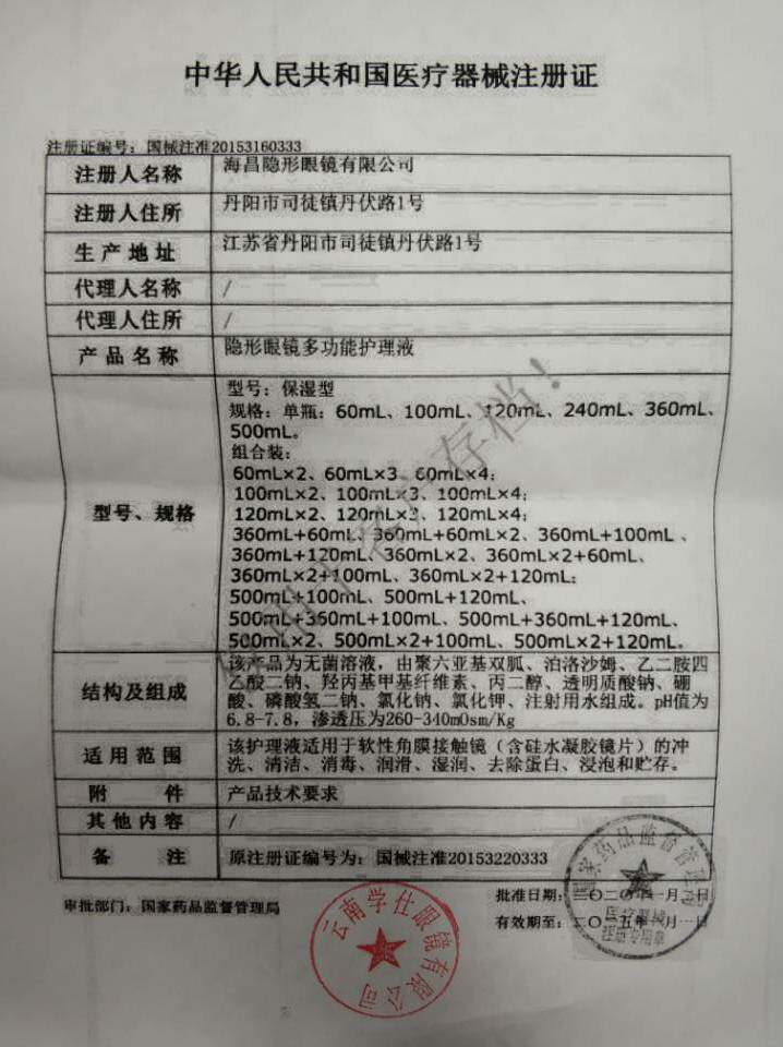 Contact lenses and the name of the care liquid product: