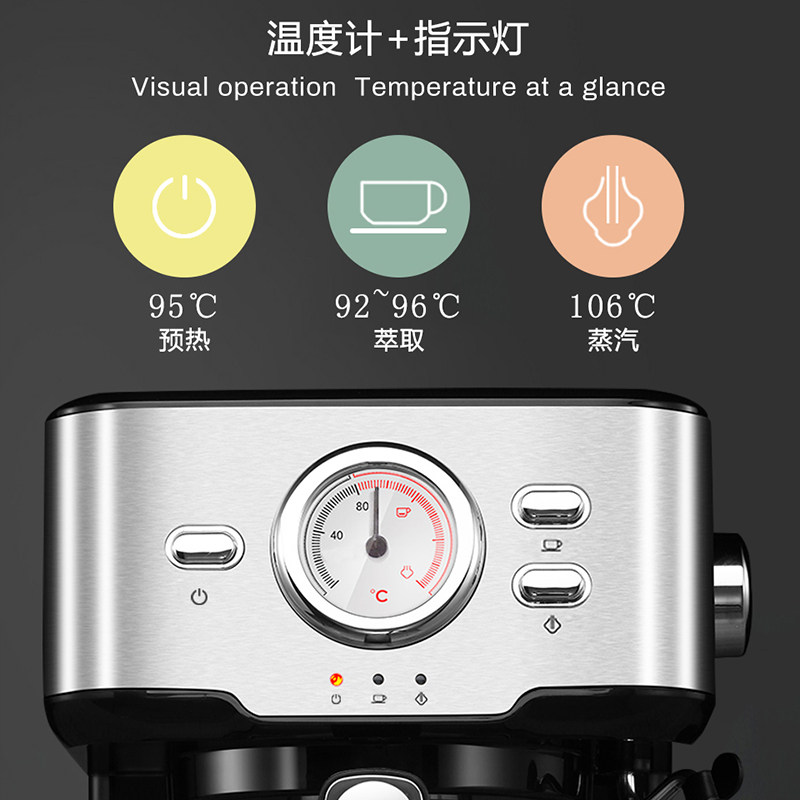 Italian espresso machine concentrated semi-automatic visible temperature steam milk froth 20Bar household small HiBREW