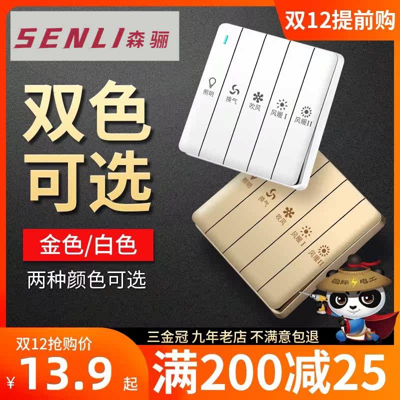 Five open bath switch 5 lighting cosmetic heater heater fan control panel household bathroom bathroom toilet five in one