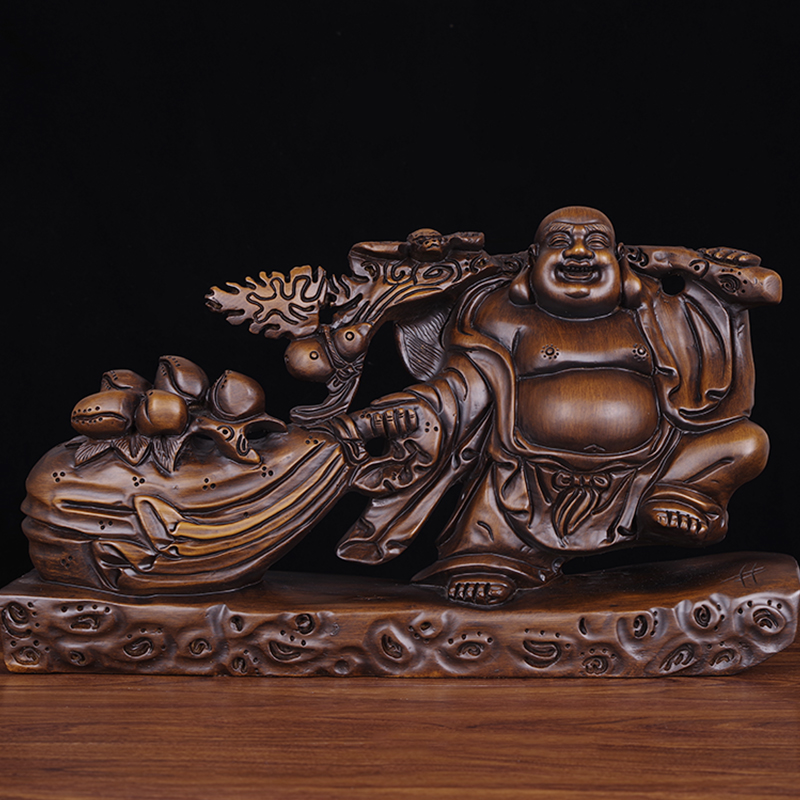 Solid wood sculptures Smiling Faces of the Buddha Pendulum Pieces Wooden Miever Statue of the Living Room Office Shop Shops Decoration Craft Gifts-Taobao