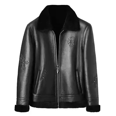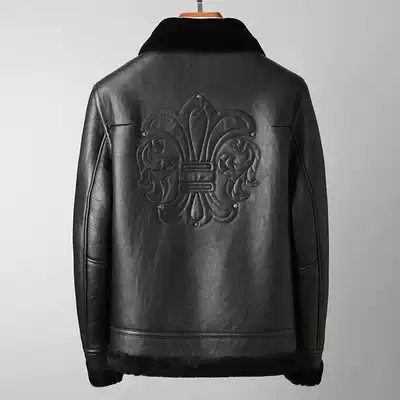 Fine veneer embroidered leather hair one men's leather fashion short lapel jacket winter fur coat