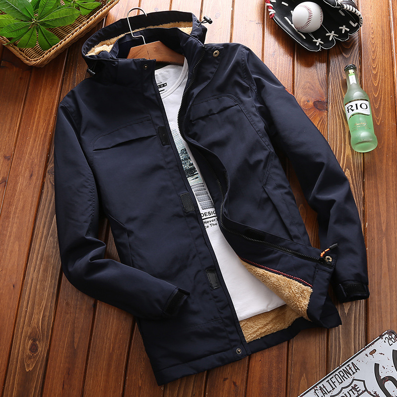 Autumn and winter velvet thickened jacket men's mid-length jacket jacket outdoor mountaineering clothing warm fishing clothing hiking