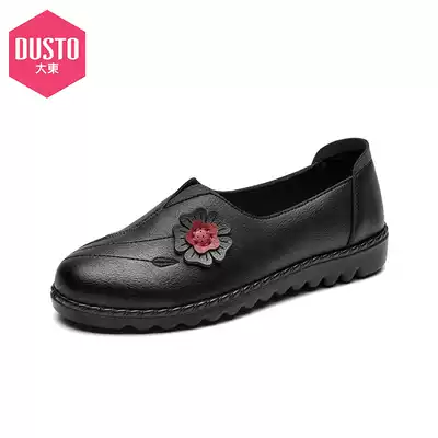 Dadong 2021 new spring elegant shallow mouth comfortable low-heel wedge heel flower embroidery set foot mother shoes women's shoes