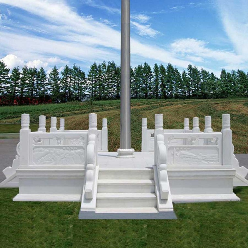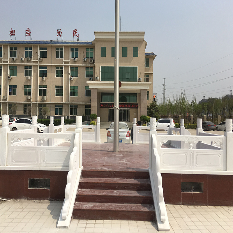 Han Bai Jade Rising Flag Bench Fence Square School Marble Unit Stone Sculpture National Flag Tahan White Jade Flag Bench Stone Hurdles Pole