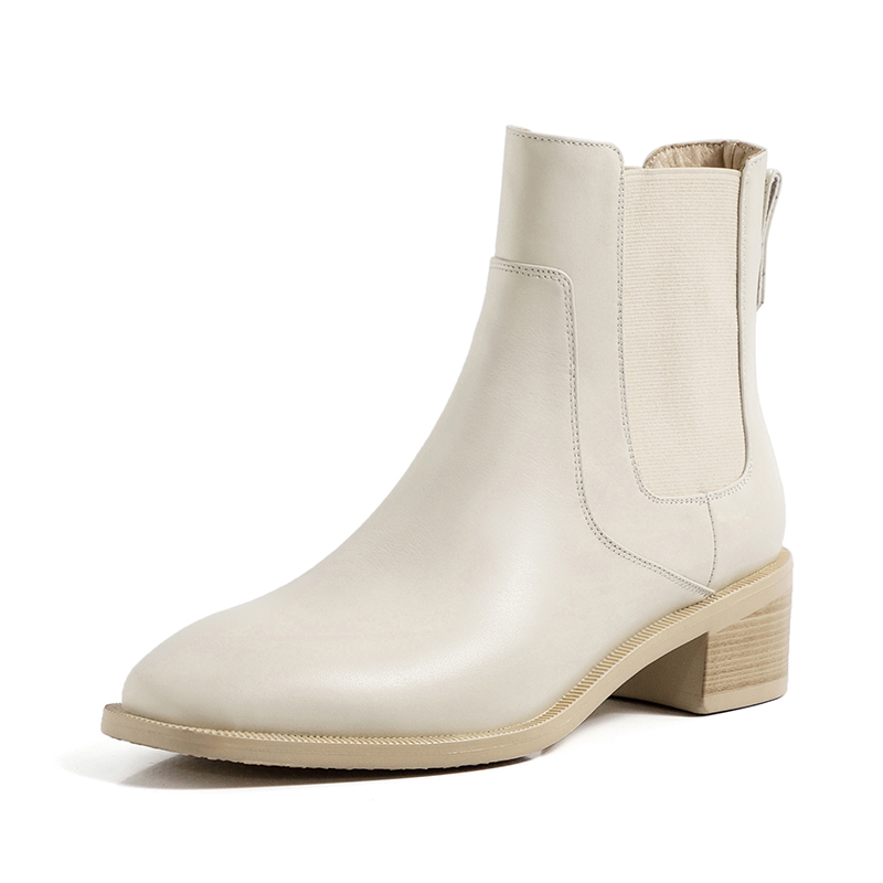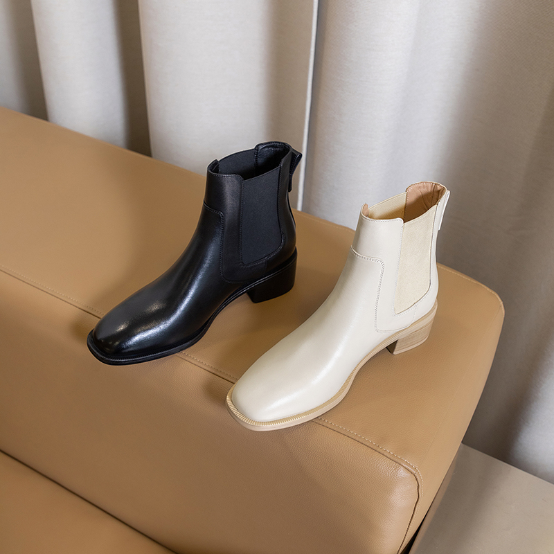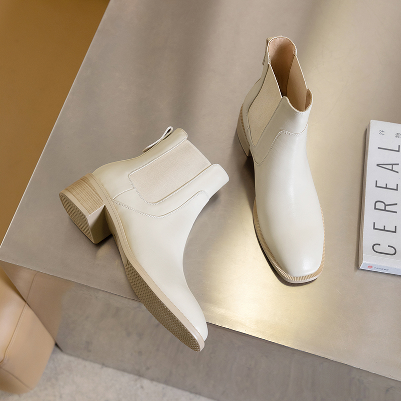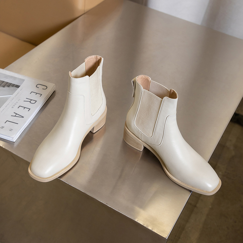 Chelsea boots women's autumn and summer short tube velvet square head and bare boots Thick heel leather wild high-heeled beige boots