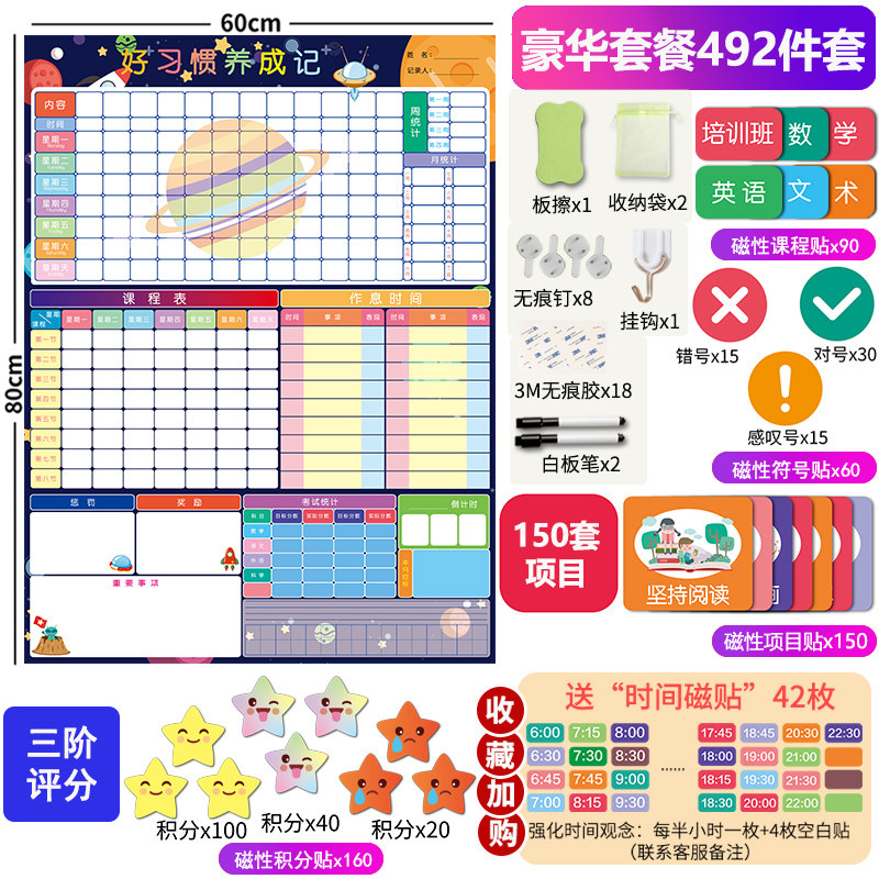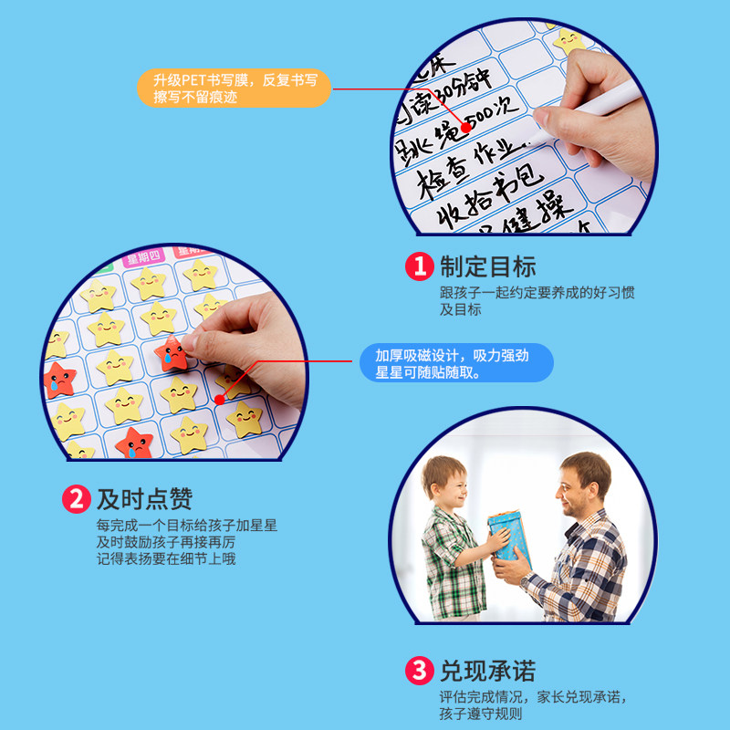 Children Growth Self-discipline Table Good habits to develop summer vacation summer program Suction Magnetic Elementary School Children Kindergarten Family Calendar Points Reward Wall Stickup Self-discipline Theorizer Behavior card recording table