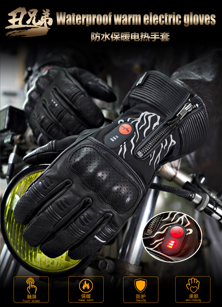 Spot long section waterproof plus suede touch screen Sheep leather anti-fall motorcycle electric heating gloves Harley Indian Triumph