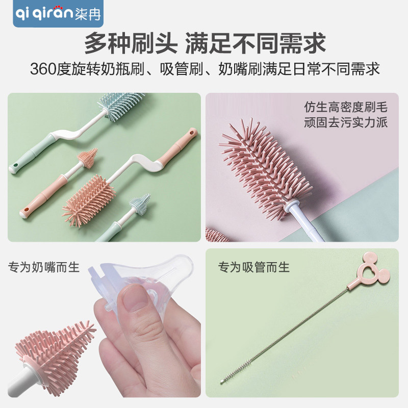 Silicone bottle brush Baby pacifier brush 360 degree rotating straw brush Cleaning brush Cleaning bottle brush set