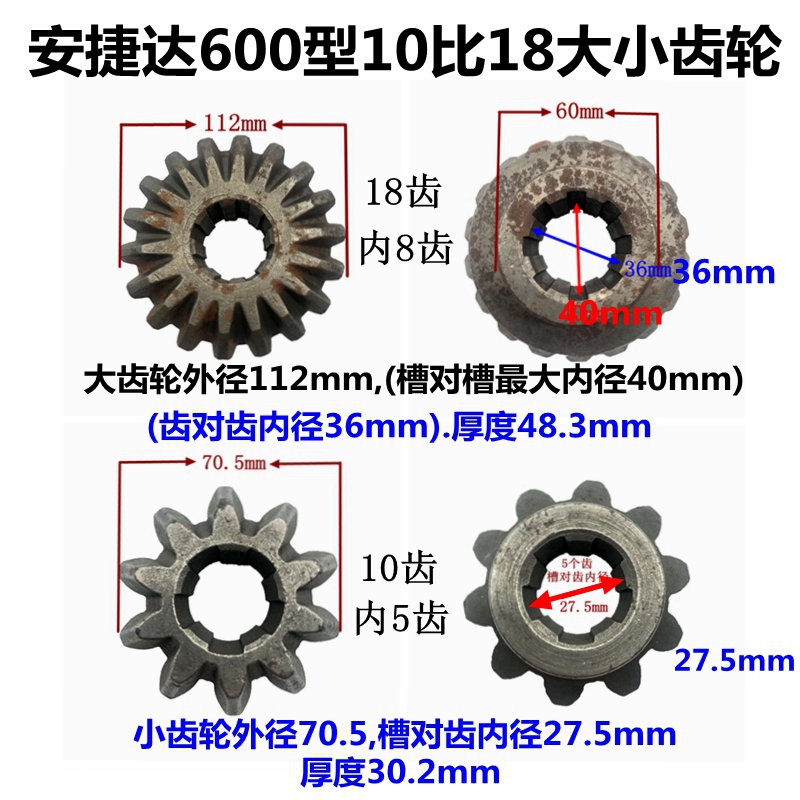 600 type size gear set 600 type small gear 600 type large gear 600 (small short shaft) 600 (large gear spline shaft)