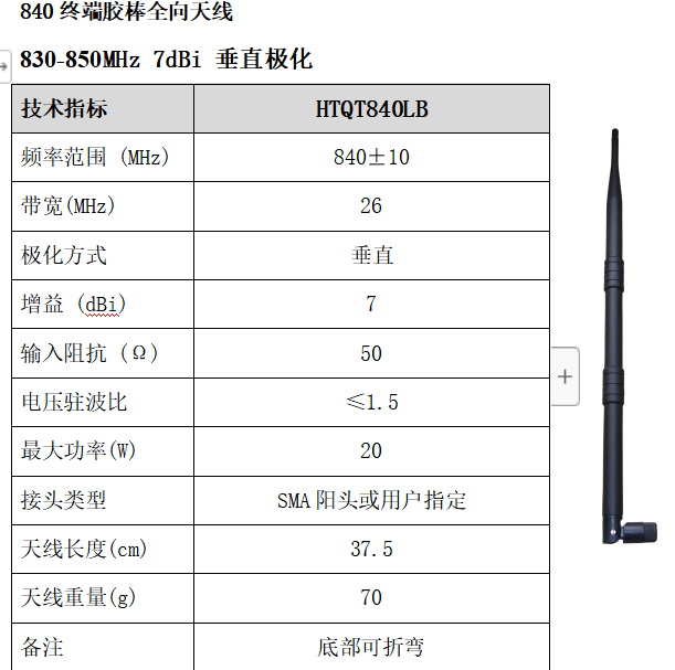 840MHz 7dBi UAV data transmission antenna 840±10MHz SMA male head can be bent 37 5 cm