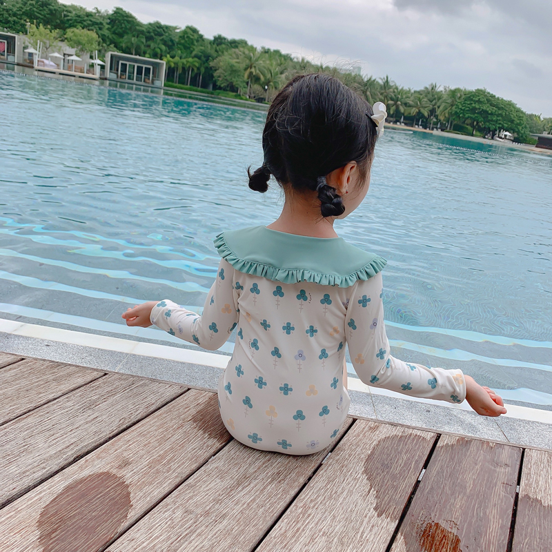 Children's swimsuit Girls ' long sleeve little princess Korean ins one-piece Western style infant small middle child girl swimsuit