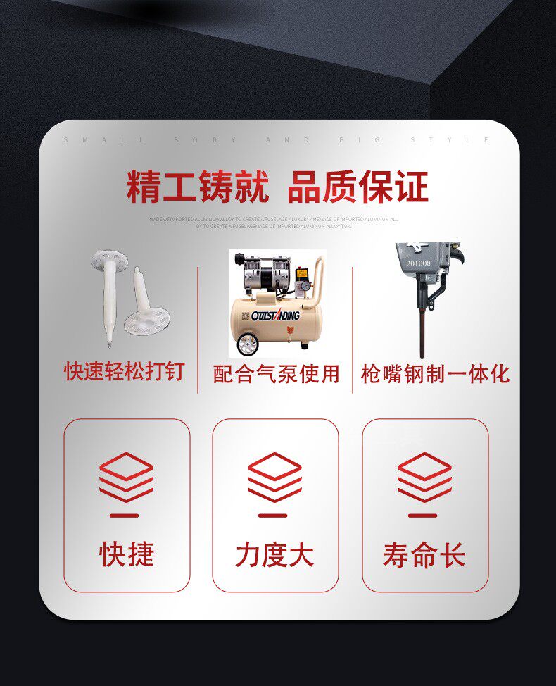 Special pneumatic shooting nail for the middle Jay BW120 insulated gun striker against fixed rock wool foam plate external wall insulation nail