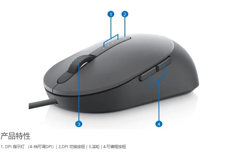 Dell Dell Original Clothing Usb Laser Wired Slide Mouse Laptop Office MS3220 Black Grey