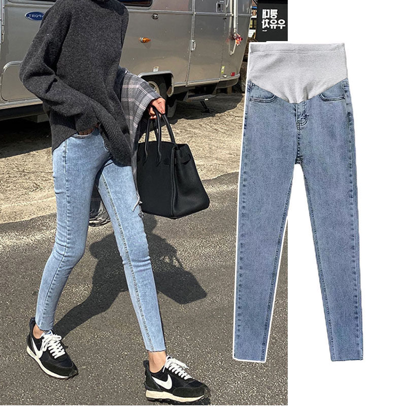 Pregnant women's pants spring and autumn wear Korean version of the Western style pencil thin section light blue pregnant women's jeans