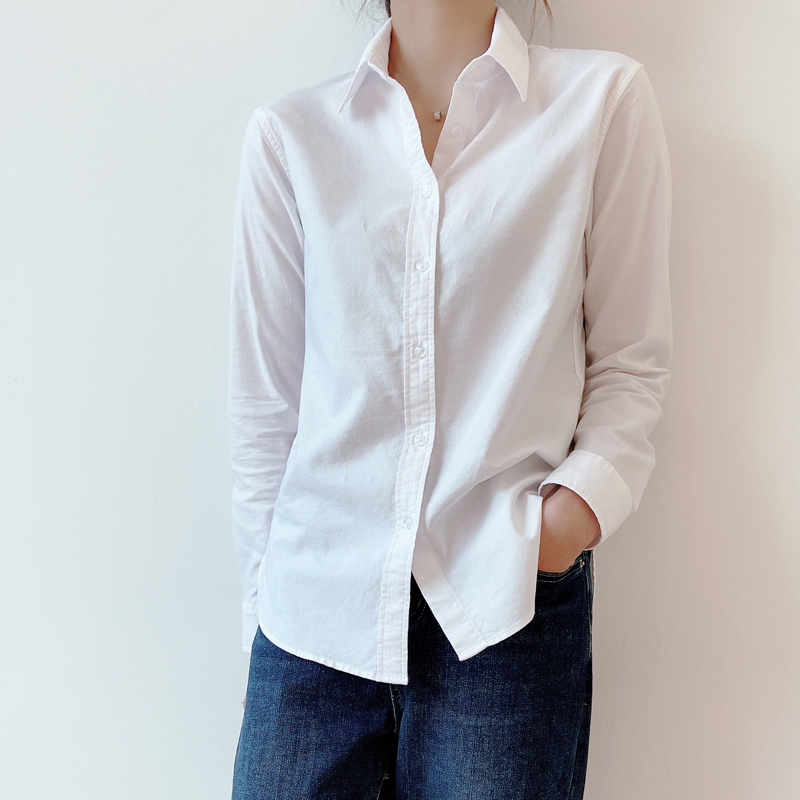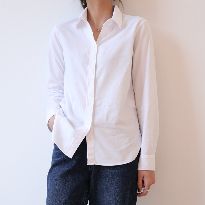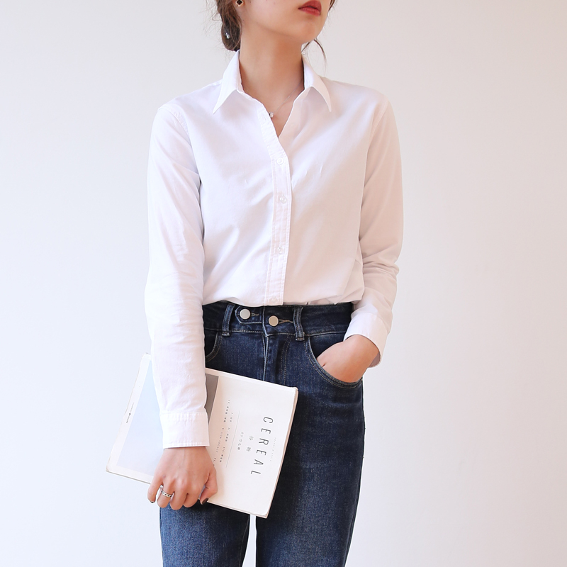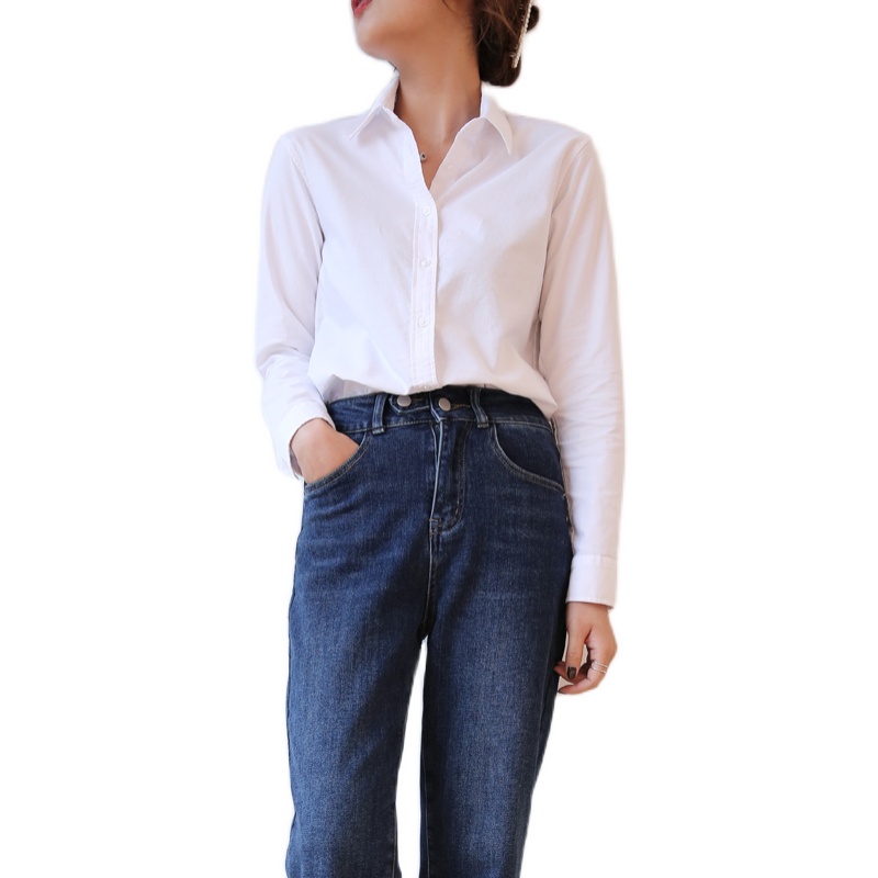 LNKK Spring Autumn section Beating Bottom White Career Interview Shirt Woman Loose Straight Drum Pure Cotton Brief about 100 Lap Shirt Woman