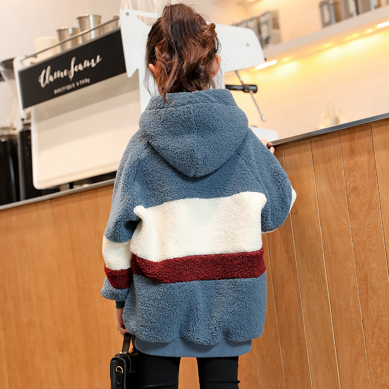 Girls sweatshirt 2021 new winter hooded children middle and large children's foreign air velvet thickened wool coat pullover coat