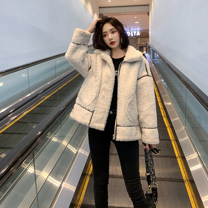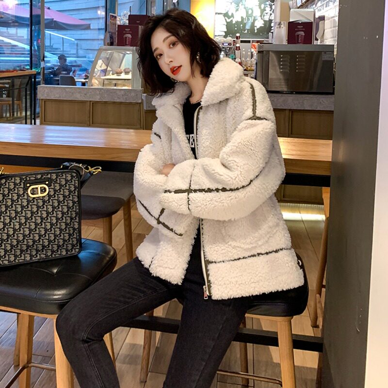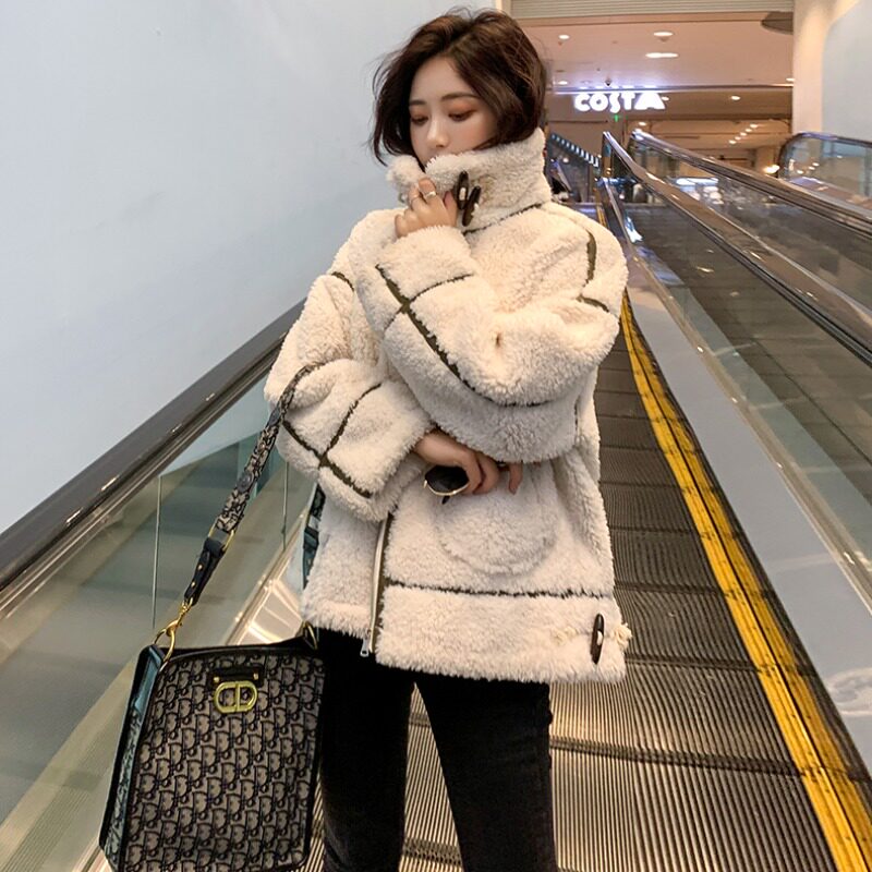 celine pianna lamb wool jacket female winter fur integrated 100 tower short loose and padded with thickened jacket