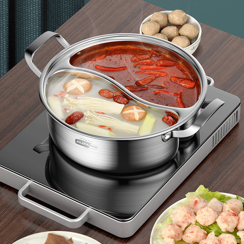 One-piece Mandarin duck pot Induction cooker special hot pot pot Household large capacity large 304 stainless steel hot pot pot
