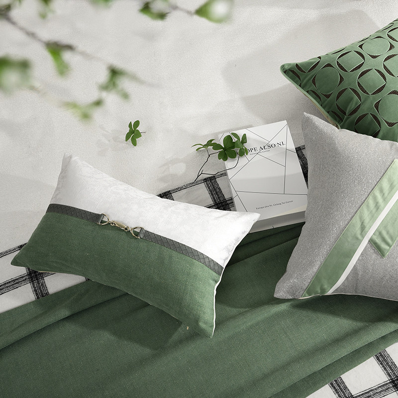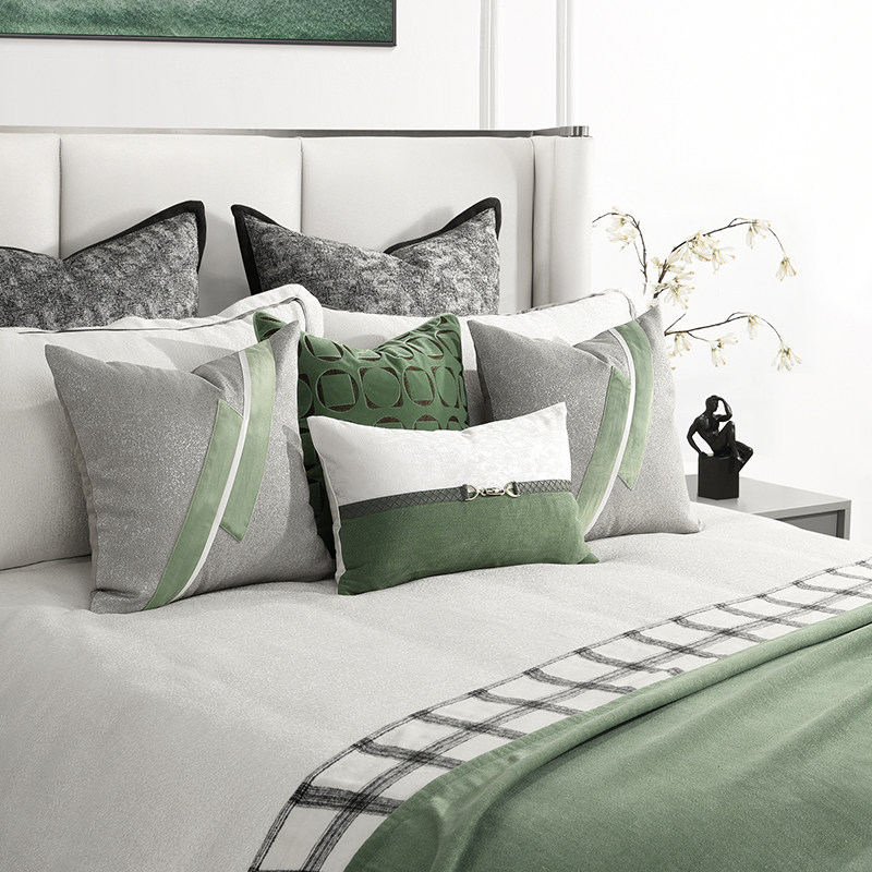 Plaid Hitch Blanket Green Prototype Room Bed Bedding Upscale Villa Hotel Modern Prototype Interbed Pint Light Extravaganza